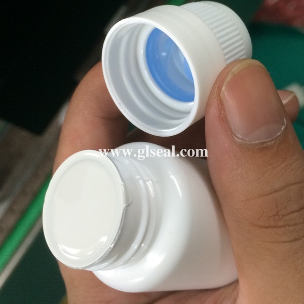 實(shí)拍某藥廠高蓋瓶子封口,蓋頂距鋁箔垂直高度為4.5cm,一般封口機(jī)無法實(shí)現(xiàn)正常封口,直到使用賽爾牌封口機(jī)。